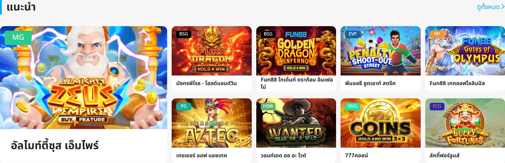 ในส่วนของเกมสล็อตและเกมจำลองFUN88ก็มีให้เลือกเล่นมากกว่า 1,000 เกม จากค่ายชั้นนำระดับโลก ภาพกราฟิกสวยงาม เอฟเฟกต์เสียงสมจริง และฟีเจอร์โบนัสมากมาย พร้อมลุ้นรางวัลแจ็คพ็อตใหญ่ที่แตกได้ทุกวัน